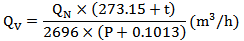公式中Qv為工作狀態(tài)下的體積流量(m3/h);QN為標(biāo)準(zhǔn)狀態(tài)下的氣體體積流量(m3/h);t為工作狀態(tài)下的溫度(℃);P為工作狀態(tài)下的表壓(MPa)。
