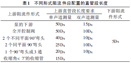 不同形式阻流件應(yīng)配置的直管段長度列于表1所示。