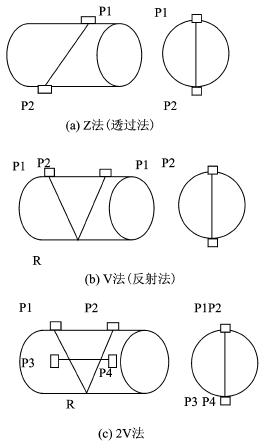 當(dāng)流體平行于管軸流動時,通常可用圖1中的透過法(Z法)安裝能獲得較好的精度。但當(dāng)流體流動方向與管軸不平行,存在半徑方向的速度成分時,應(yīng)采用圖1中的反射法(V法)或者采用2V法安裝。對于已配置好的流體管道,特別是測量大口徑管道流量時,由于上游流動狀態(tài)的干擾而易于造成測量誤差的場合,比較合適的措施是增加測量線,即增加超聲波的傳播路徑,更多地接受傳播路徑中的流速信息,進(jìn)行平均,以抵消流體擾動造成的測量誤差。增加測量線時,換能器的安裝應(yīng)使超聲波傳播途徑均勻地置于流通截面上。一般認(rèn)為有4條測量線(即4個換能器)就足夠了。