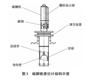 磁翻板液位計是根據(jù)磁性原理、 阿基米德浮力定律等巧妙地結合機械傳動的特性而開發(fā)研制的一種專門用于液位測量的裝置。典型的磁翻板液位計結構如圖 1 所示。