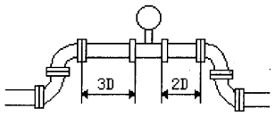 縱端面采用特殊形線的變徑整流器(己申報國家),具有整流,提高流速及改變流速分布的多重作用,其結(jié)構(gòu)尺寸小,長度僅為工藝管內(nèi)徑的1/3,可以直接卡裝在儀表的兩端,不僅不需要另外附加直管道,而且可以降低儀表對上游直管道的要求。實驗表明:儀表上游阻力件為一個平面內(nèi)的兩個90°彎頭 在一般情況下,渦街流量計上游側(cè)應(yīng)加裝大于20倍管道內(nèi)徑長度的直管道,而渦街流量計加裝了變徑整流器大大降低了對上游測直管道長度的要求,其阻力遠遠小于傳統(tǒng)的變徑管。更主要的是,可使下限流速降為原來的1/3,量程比提高到15:1以上。 ’